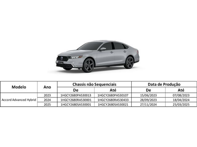 Honda Accord Advanced Hybrid ano modelo 2023 a 2025 passa por recall